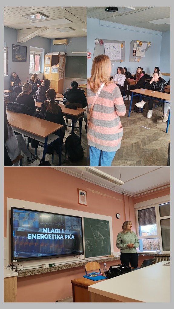 Profesorica Anita Bašić Jakobović održala je predavanje za učenike i nastavnike pod nazivom „Energetska pića i mladi – Energetska pića stvarno ti daju krila?“ Energetska pića vrlo su popularna među mladima, iako su mnogi svjesni da nisu dobra za zdravlje.