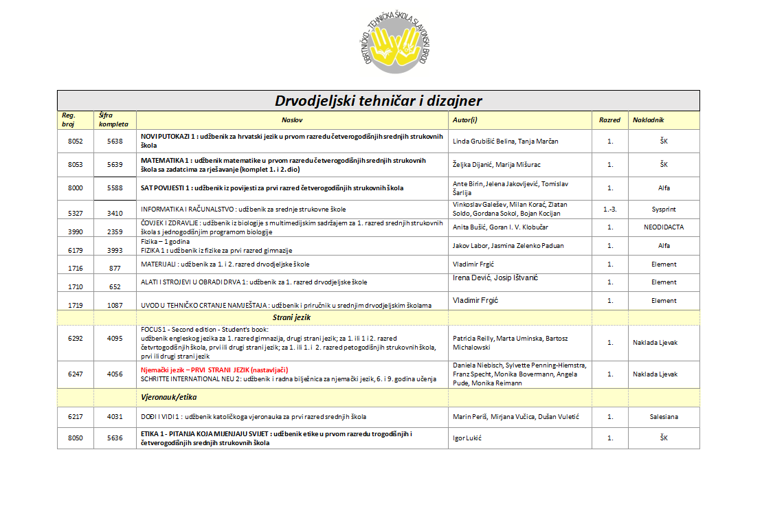 Pri nabavi udžbenika obratite pažnju na udžbenike stranog jezika. Svaki učenik uči samo jedan strani jezik te kupuje udžbenike samo za onaj jezik koji uči – njemački ili engleski, osim zanimanja KUHAR, SLASTIČAR, KONOBAR koji uče oba jezika.
